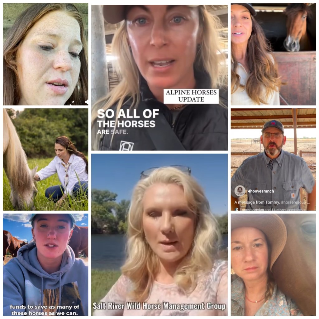 Kathy Reidhead (arizona.wild.horses on Instagram) – Photographer and advocate who led original efforts to raise awareness and find homes for the Alpines; Became critical of several rescues for the lack of transparency and mass bailing efforts.